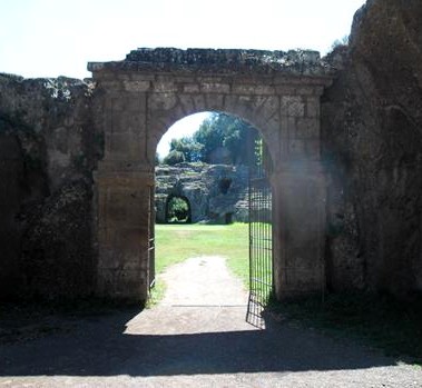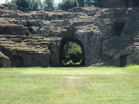 Anfiteatro di Sutri, l'ingresso sulla via Cassia visto dall'arena