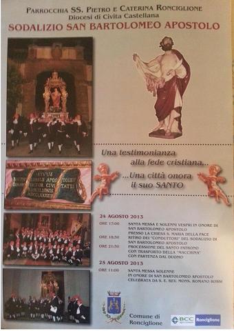 Ronciglione dal 22 al 31 Agosto 2013 celebrà San Bartolomeo Apostolo.