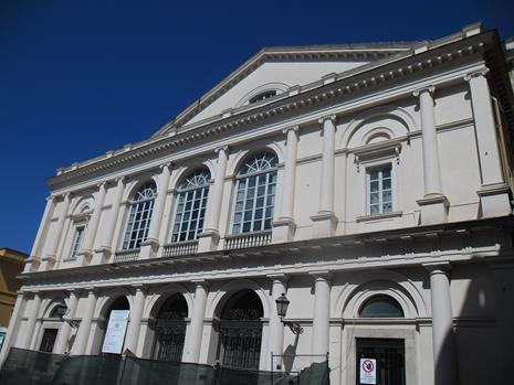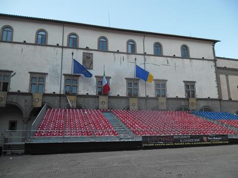 Quinta Sosta: Piazza Verdi o del Teatro - E' prossimo l'ultimo tratto del percorso, quello che conduce al Santuario di Santa Rosa, la meta dei Facchini. A causa del dislivello della strada si tratta probabilmente della fase più dura ed emozionantedel Trasporto.
